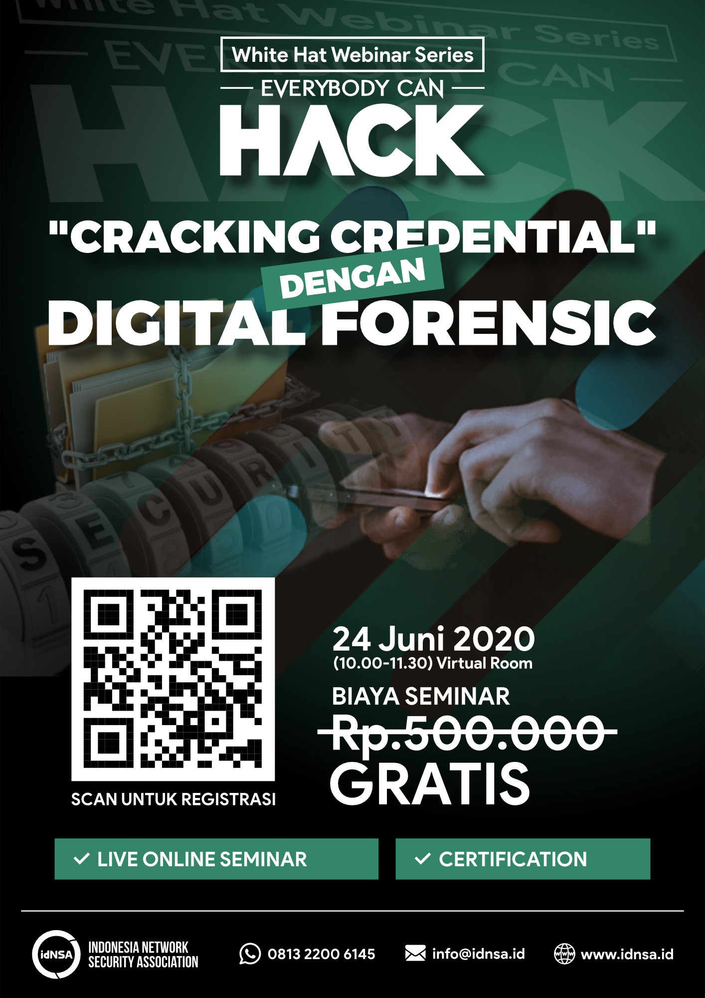 “Aaahh tenang saja, data saya aman kok. Kan sudah saya kasih password, sudah saya hapus, dan sudah saya sembunyikan.” Mungkin itu yang akan kamu pikirkan. Padahal dengan teknik forensik digital, data yang terproteksi itu bisa diambil. Forensik digital dilakukan karena biasanya data di perangkat target dikunci, dihapus, atau disembunyikan. Forensik digital berkaitan dengan data-data yang ditemui pada semua media penyimpanan digital. Bisa data di handphone, komputer, flashdisk, harddisk, dan lain sebagainya.
