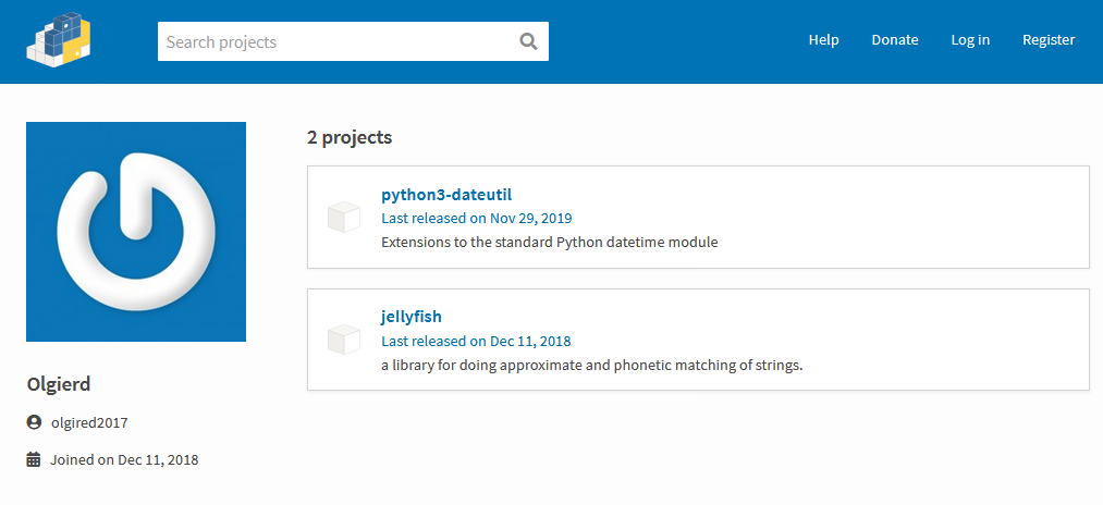 Kedua library diunggah di PyPI oleh developer yang sama, yang menggunakan nama pengguna olgired2017 - juga digunakan untuk akun GitLab.