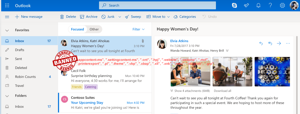 Oleh karena itu, untuk melindungi penggunanya dari skrip berbahaya dan dapat dieksekusi, Microsoft berencana untuk membuat daftar hitam 38 ekstensi file tambahan dengan menambahkannya ke daftar ekstensi file yang diblokir agar tidak diunduh sebagai lampiran di Outlook di Web.