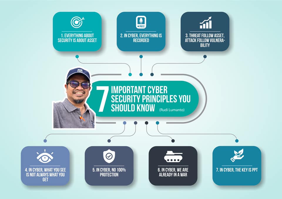 - kunci keamanan siber adalah people, proses dan technology. Proses menjadi perekat antara people dan technology. Ketiganya harus diatur seimbang. Mungkin bahkan pake teknologi lokal dan sederhana jauh lebih aman jika orang orangnya punya kesadaran tinggi dan budaya keamanan yg baik, dibanding pake teknologi mahal dan branded tapi budaya dan kesadaran orang orangnya tidak terjaga.